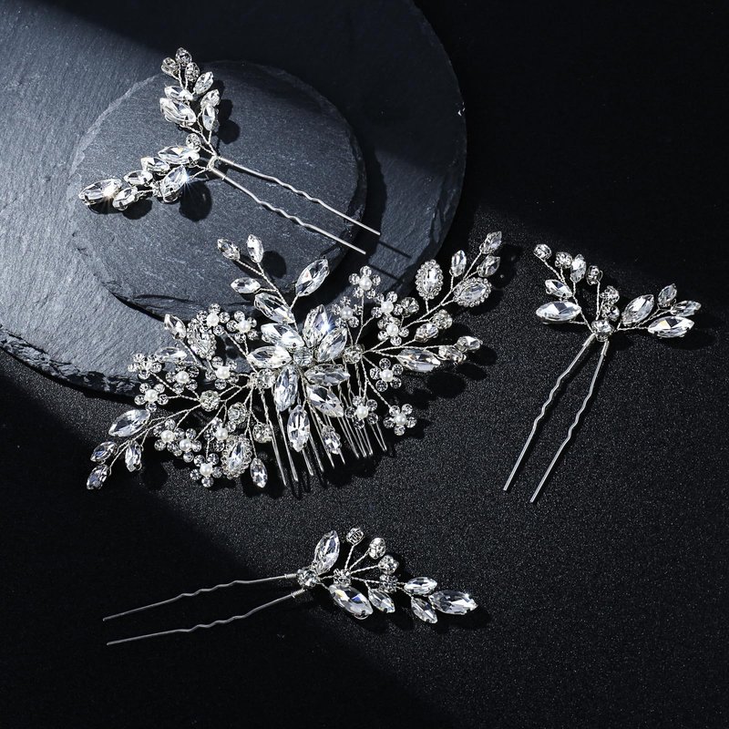 - 【WEDDING HAIR PIEC SETS】This set includes one crystal hair comb and three crystal hairpins. Can be used individually or together as a set, Versatile mix and match. Also includes two hair clips as a gift, which are convenient for securing the hairstyle.