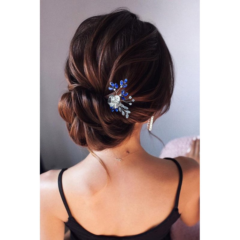 Wedding Hair Accessories for Brides, Beusoulover Bridal Hair Accessories 2 Pieces Sapphire Blue Crystal Hair Pieces, Handmade Rhinestone Bridal Hair Pins for Women, Girl, Brides, Bridesmaids, Prom,