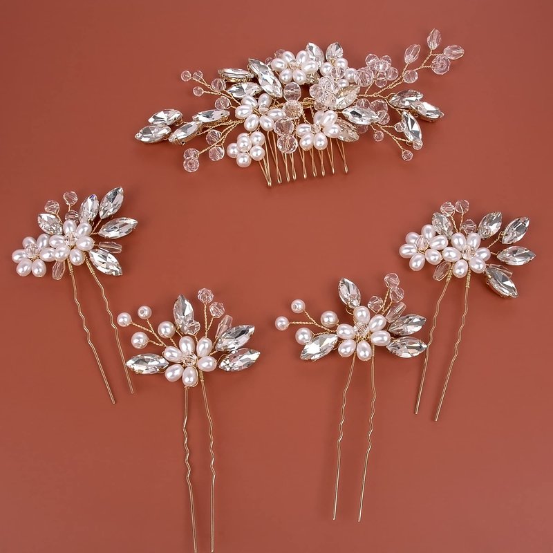 - Delicate Wedding Hair Accessories including 1 pearl hair comb and 4pcs silver pearl hair pins. All the 5 packs are made of high quality alloy wire, pearls, flowers and crystal rhinestones.