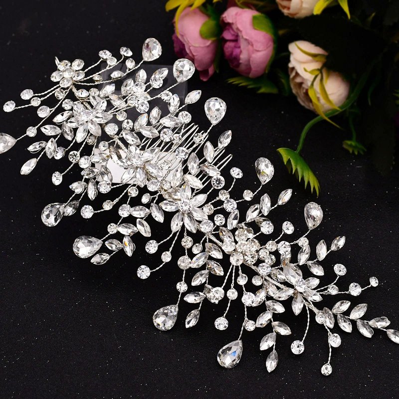 wedding tiara bridal hair piece silver rhinestone hair accessory for ladies,Rhinestone Bridal Bridesmaid Hair Comb Accessories (Silver One on the Left)