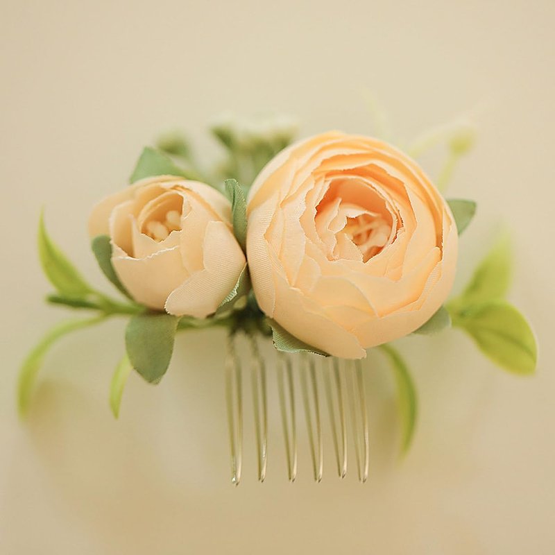 Wedding Yellow Ivory Flower Hair Comb Clips Floral Headpiece Floral Hair Accessories Christmas Festival Headpiece Women Girls Party Silvery