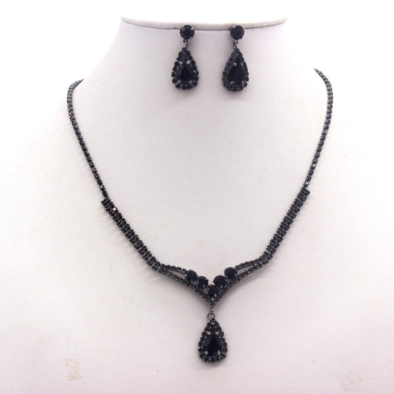- PACKAGE INCLUDE : BRIDAL BLACKTIARA AND RHINESTONE BLACK NECKLACE EARRING SET(ONE OF THEM)