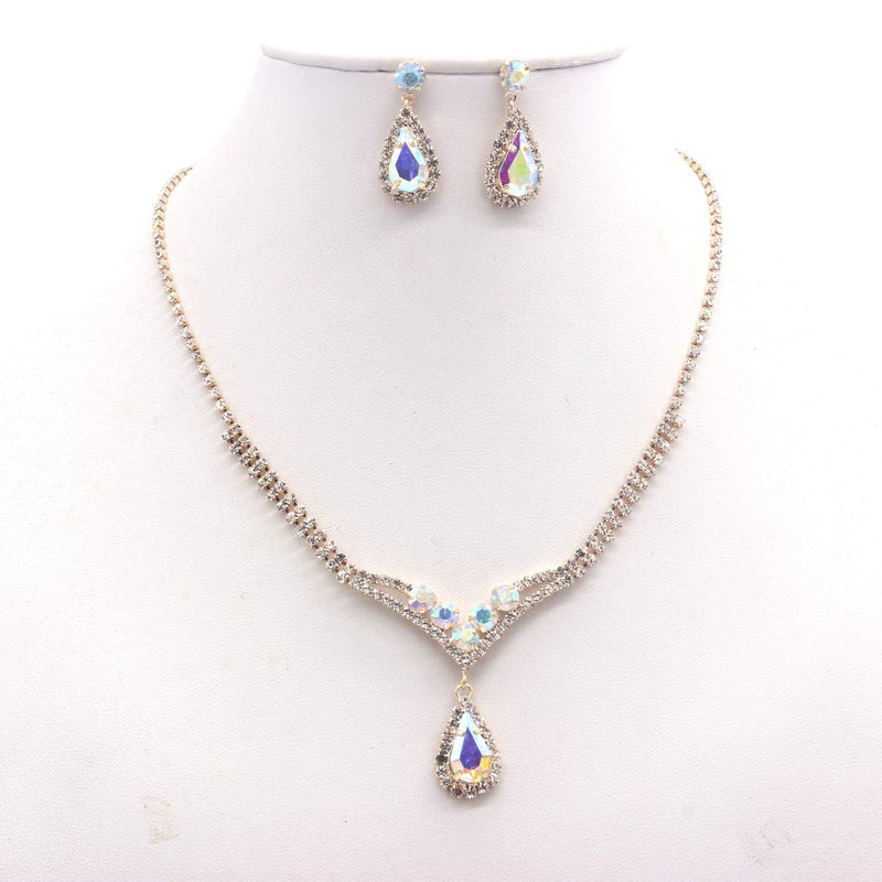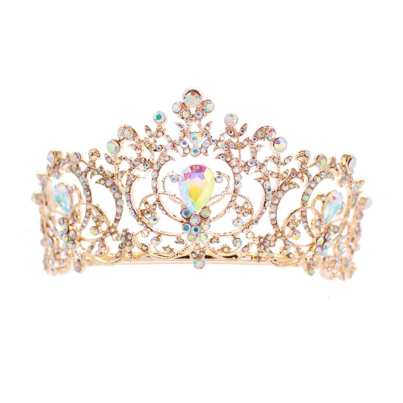 Weddingtopia Crystal Gold Ab Wedding Tiara And Matching Rhinestone Wedding Necklace Set Rhinestone Bridal Tiara Crown with side combs Wedding Hairband Comb Pin (GOLD AB)