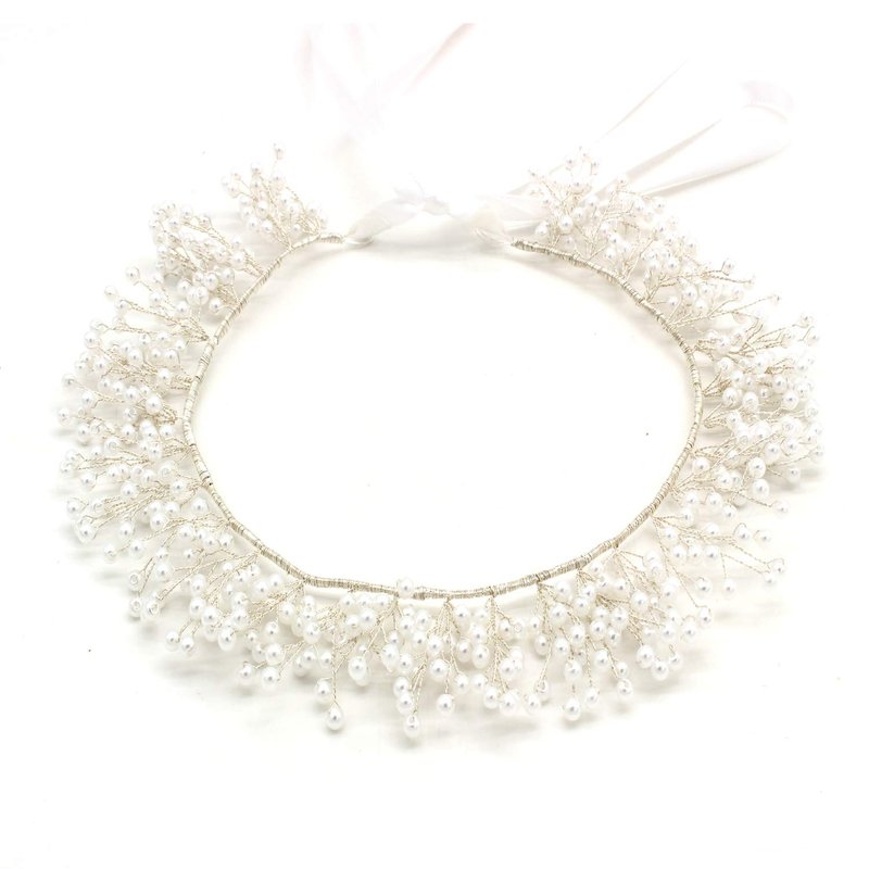 - Crystal wedding Handmade headband material: high quality alloy, blinking crystals and Pear with ivory white ribbons.
