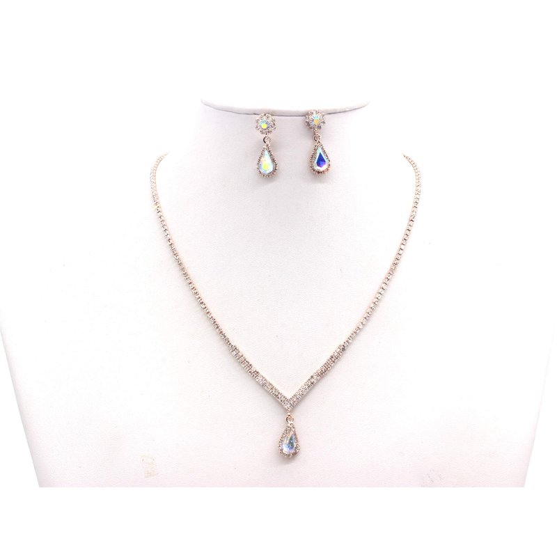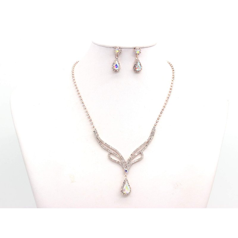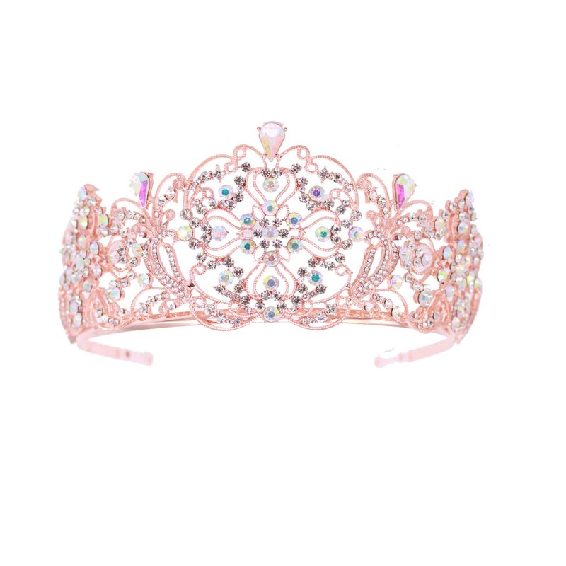 Weddingtopia Crystal Princess Pageant Rose Gold Wedding tiara for bridal Plus Wedding Necklace Set– Rhinestone Bridal Tiara Crown With Side Comb (ROSE GOLD AB)
