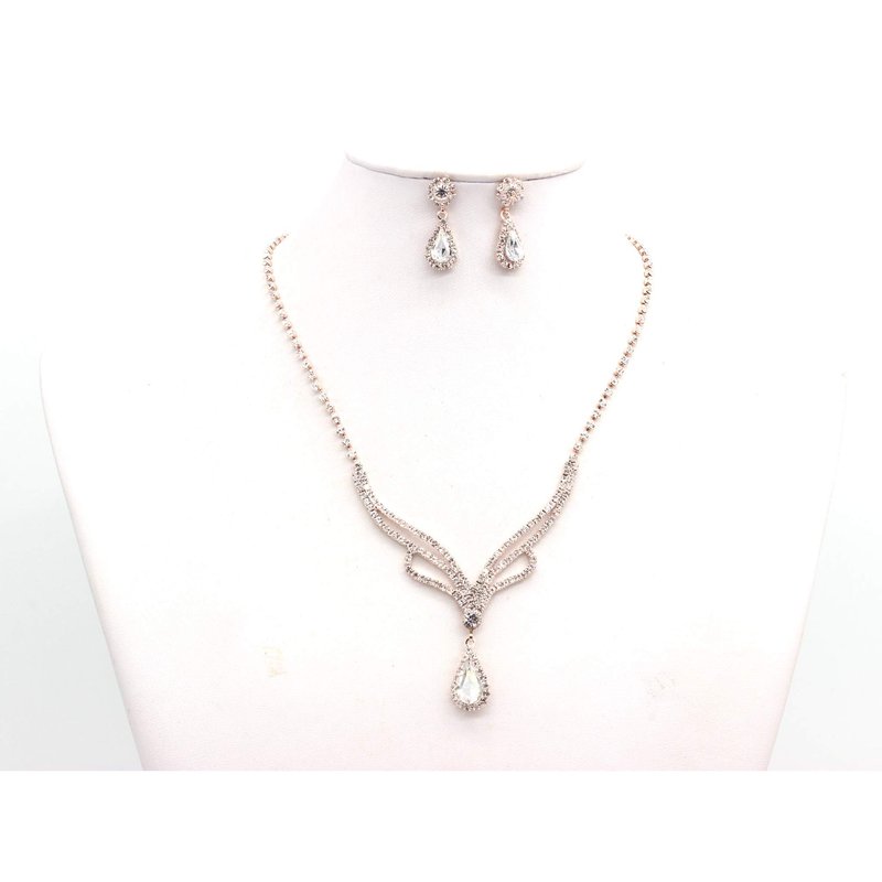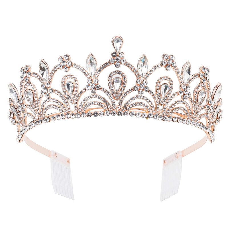 Weddingtopia Rose Gold Tiaras and Crowns Wedding Tiaras Rose Gold and Rose Gold Crowns Plus Wedding Necklace set For Free– Bridal Rose Gold Tiara Crown with side combs (ROSE GOLD CLEAR)