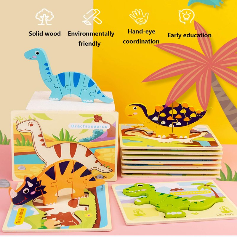 - CUTE DESIGN WITH BRIGHT COLORS: The 3D stand up dinosaur wooden puzzles with beautiful and bright colors can draw kid's attention to sit down, connect wood pieces with logic, and play puzzles with patience for hours which can Improve fine motor skills and building kids' spatial concept.
