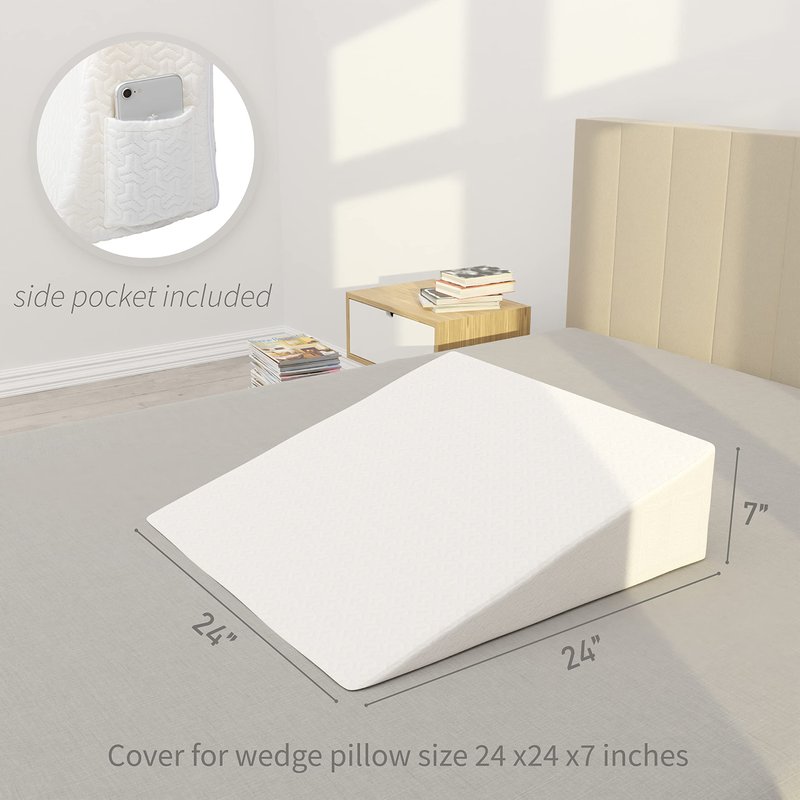 - SIDE POCKET. Convenience has never been so accessible! The bed wedge pillow cover features pockets on either side, providing an instant and easy-to-reach storage space for small items commonly used in bed.