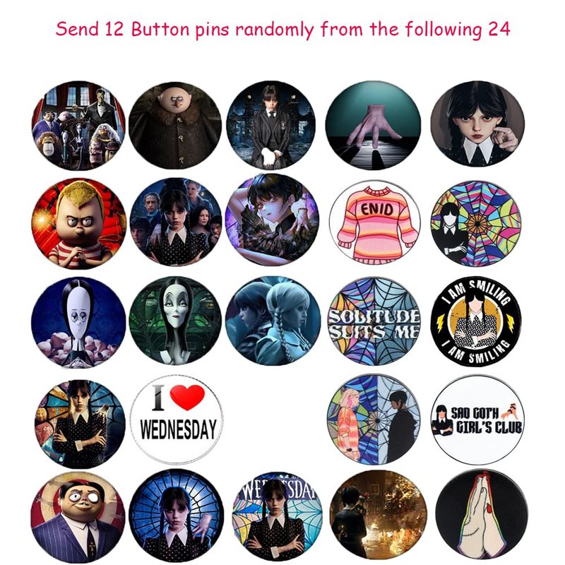 - 4.Multi-use: These are Wednesday Addams bracelets, it is very cool when wear it; Use our stickers on your laptop, bicycle, skateboard, car, luggage; Button pins are perfect for Every Occasions & Decorations!