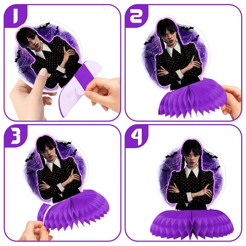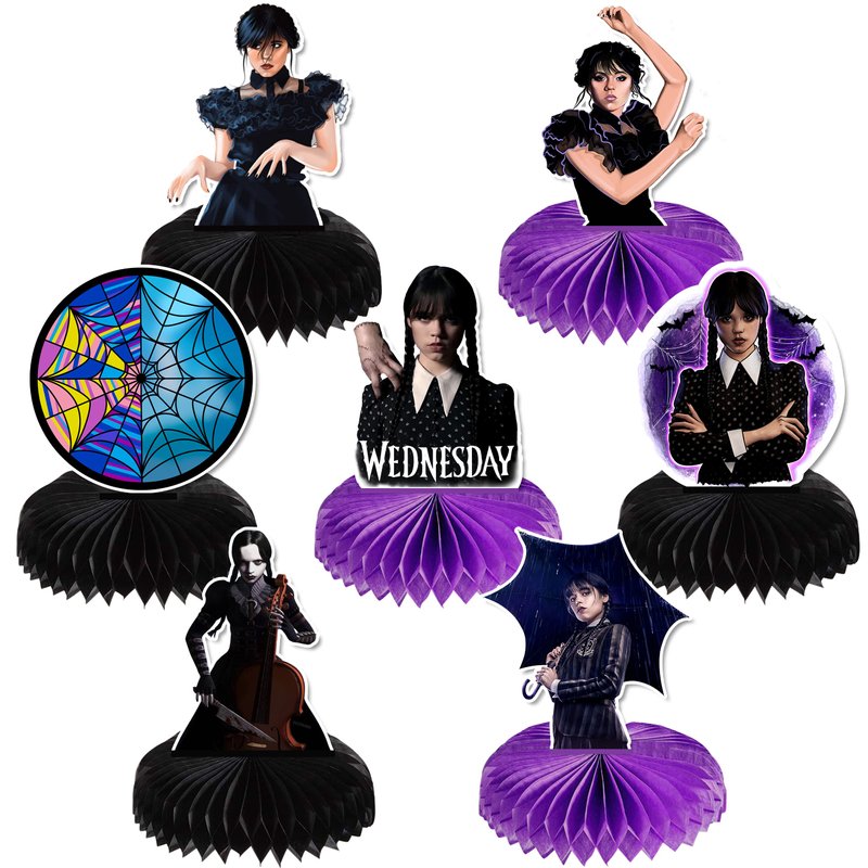 - 【Widely Use】 Wednesday New Addams themed Honeycomb Centerpieces decorations are suitable for most events, such as children's parties, family gatherings, school recreational activities, or other decorations. These decorations can create an enjoyable and active atmosphere to these scenes. If you are going to throw a Wednesday theme party, the decorations kit make for fantastic decorations.