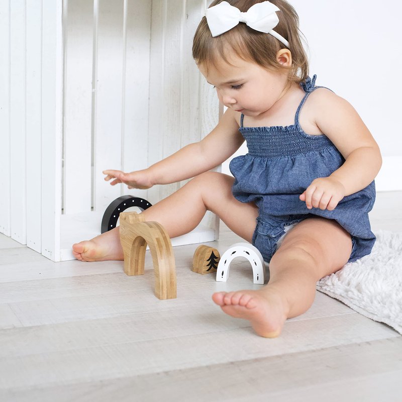 - Hands-on Problem Solving: An arc stacker that can be used as a balancing toy for baby and toddler fine motor skill development. The pieces nest back into their rainbow shape, like a puzzle problem solving activity. Nest and stack these sturdy bamboo pieces with many opportunities for fun and creative play.