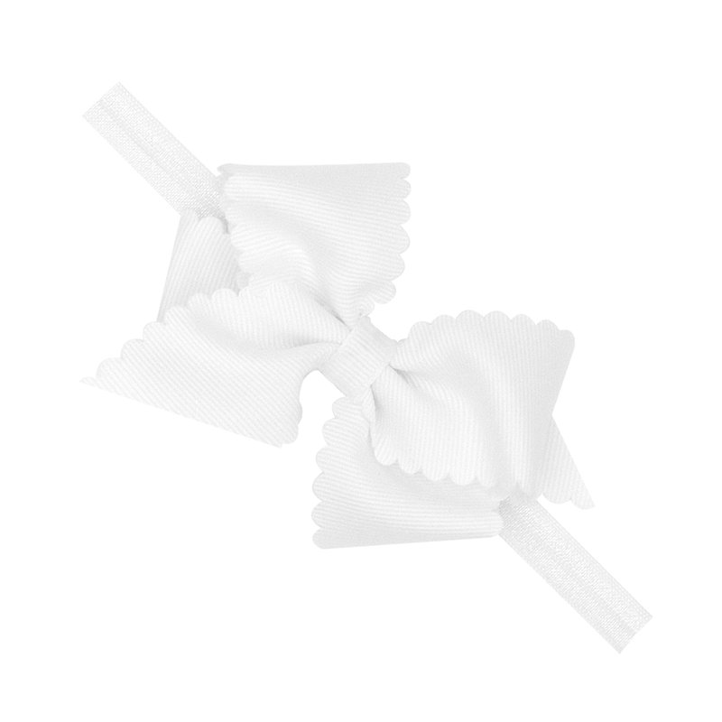 This extra small grosgrain bow on a matching 3/8 inch elastic band is perfect for infants and babies. Available in our three most popular infant colors. Approximate Size: 3.5” x 2.25” (1.5” Ribbon)