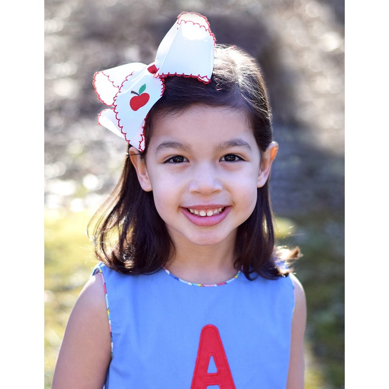 Wee Ones Girls Grosgrain Hair Bow with Moonstitch Edges and Apple Embroidery, Apple, King