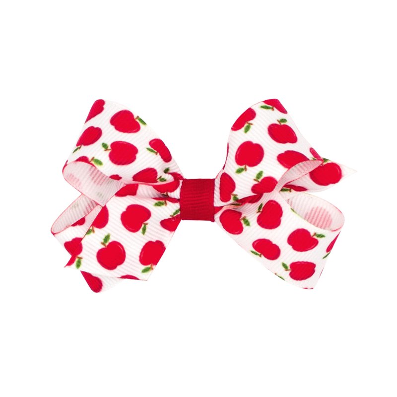 Wee Ones Girls Harvest-themed Apple Printed Grosgrain Hair Bow, Apl/Wht, Mini