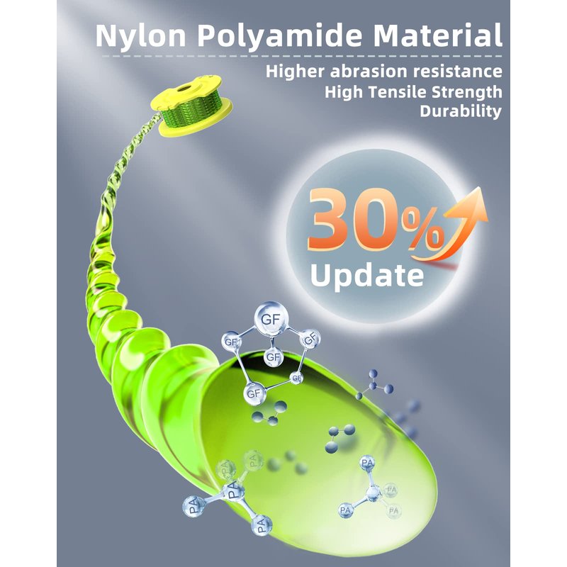 - 𝐏𝐫𝐞𝐦𝐢𝐮𝐦 𝐌𝐞𝐭𝐞𝐫𝐢𝐚𝐥: This thread is made of high-quality copolymer nylon resin material.This gives the thread better flexibility and durability. The ABS spool provides a solid foundation that can withstand the high-speed operation of the lawn mower.