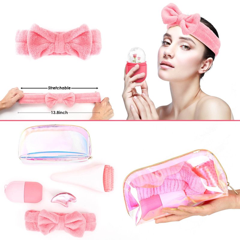 Set includes: ice face roller, facial ice mold, gua sha tool, SPA headband, clutch bag, instructions;