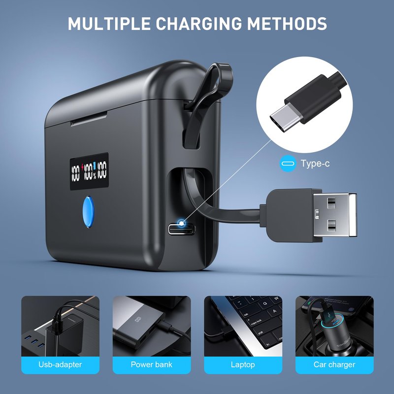 - 🔋【Convenient Design】The portable GoPro battery charger features a flat design. It is easy to fit into a pocket or backpack. In addition, the foldable USB cable and USB C input make it convenient for you to use.
