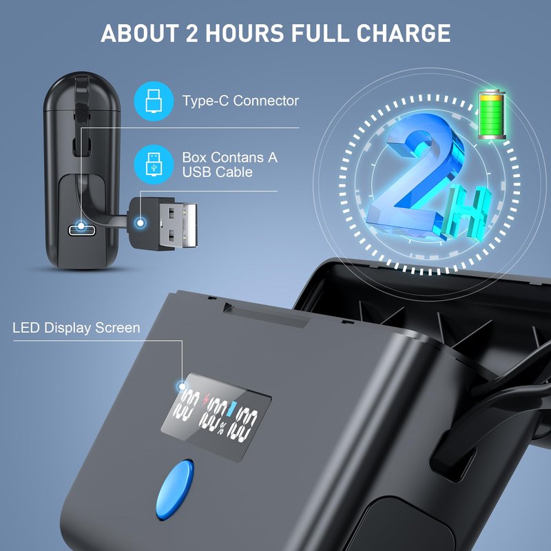 - 🔋【Fast Charging】The Type-C port takes about 2 hours to fully charge three GoPro Hero 5-11 batteries. The LED display screen has a charger completion percentage setting, so you can accurately see the charging progress.