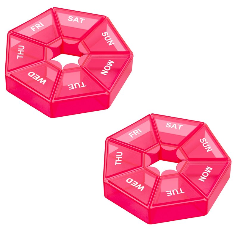 Weekly Pill Organizer, 2 Pack Portable Pill Box Medicine case 6 Colors (Seven Day) New Edition for Vitamin/Fish Oil/Pills/Supplements-Arthritis Friendly (Red)