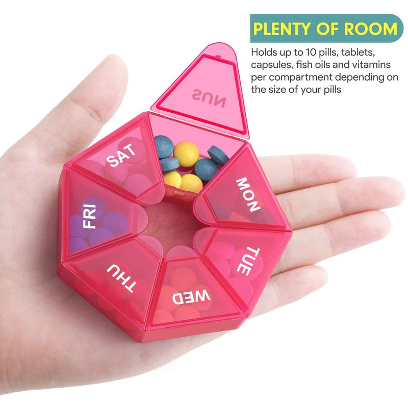 - Conspicuous Printing:Bigger printing of days of the week makes it easier for you to distinguish,let the pill dispenser organizer remember the time for you instead of by yourself,and improved printing stand usage of 10 years