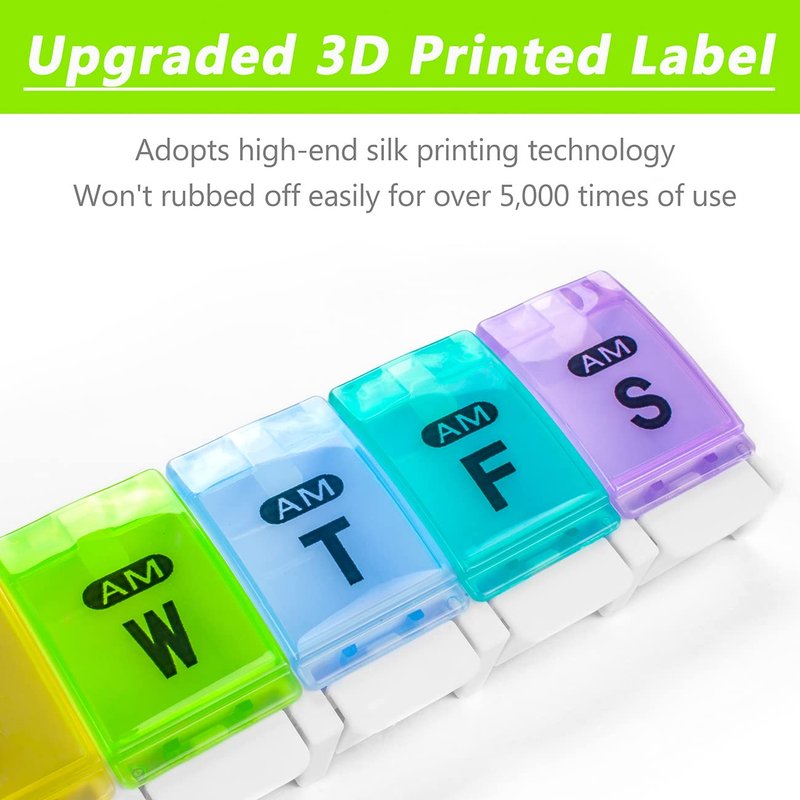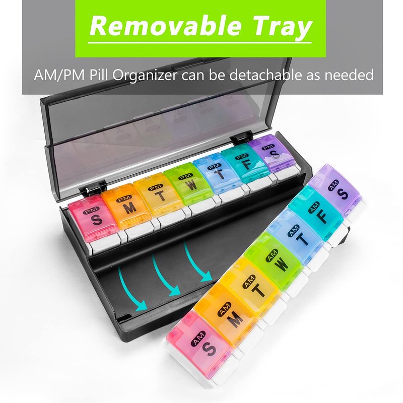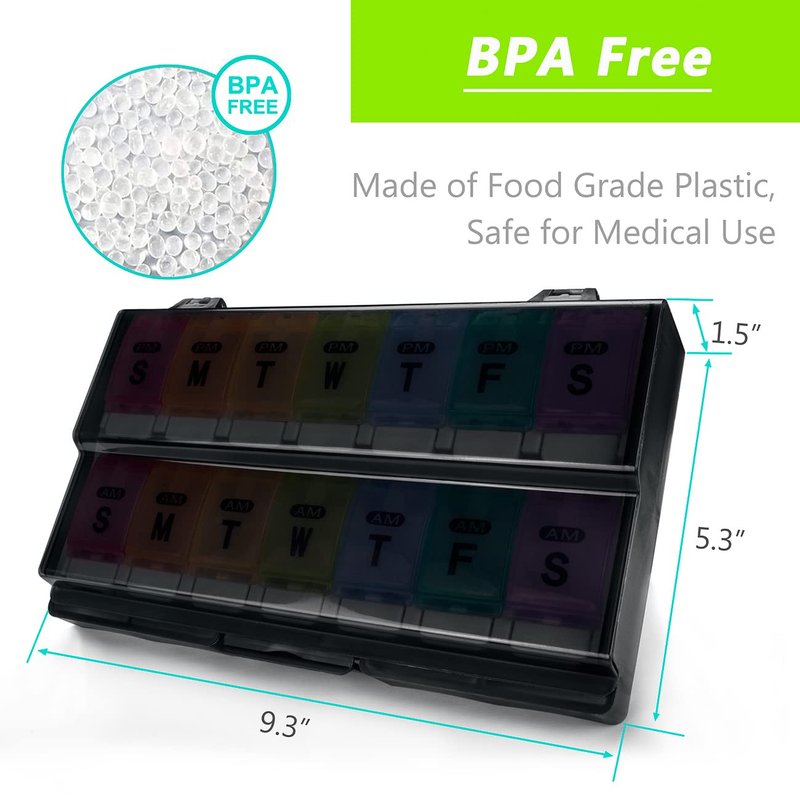 - Easy To Open: Our 2 times a day pill box comes with push button design, press gently with your thumb on the front of this large 7 day pill organizer and the lid pops open, arthritis friendly, making it incredibly easy for you to open even with a single hand!