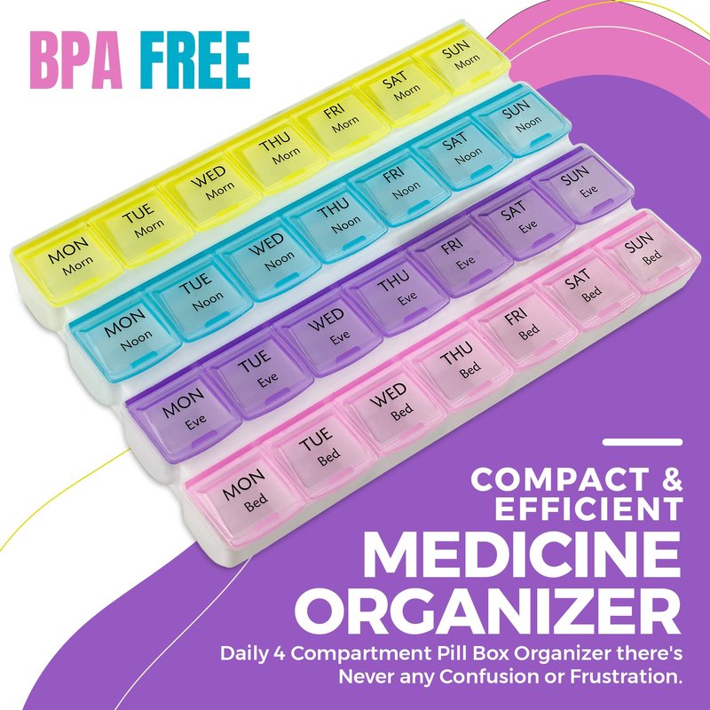 Weekly Pill Organizer with 28 Compartments, by MEDca