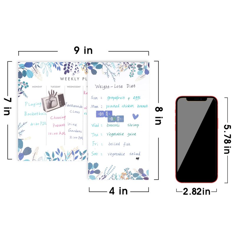 - PREMIUM PAPER AND SIZE: This weekly planner notepad tear off is also a artwork for many people, so we made sure each sheet is 100 gsm thick, never worrying about bleeding. The big one is 7×9 inches and small one is 4×8, comes with 52 tear off sheets,the perfect size fits in the office desk and bag.