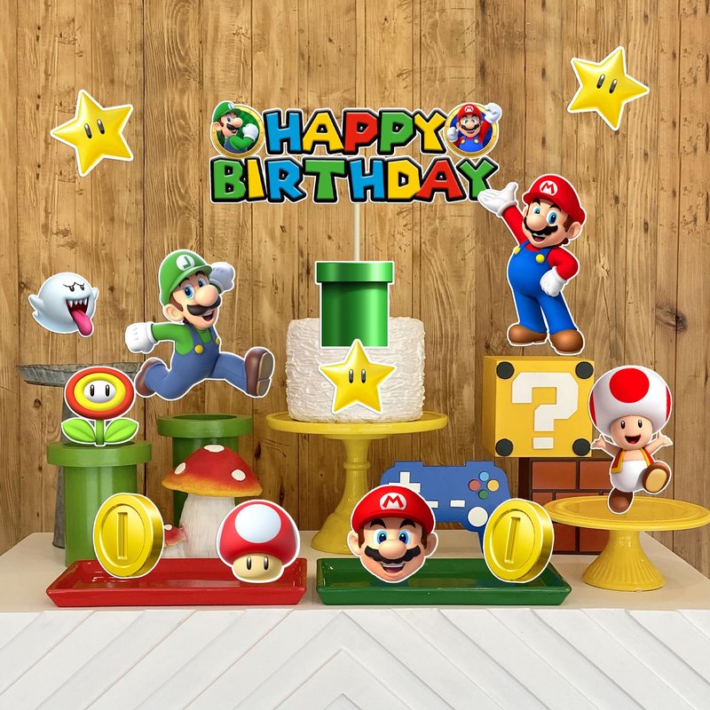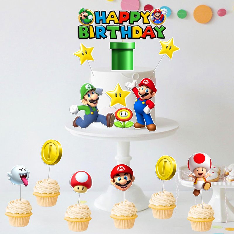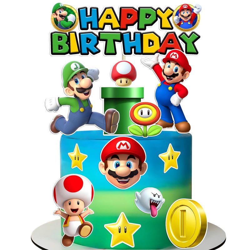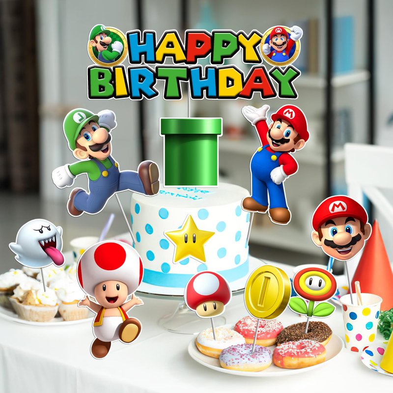 WEERSHUN Super Bros Cake Topper for Birthday Party, Fun Kid's Party Cupcake Decoration, Super Brother Birthday Party Supplies 14Pcs