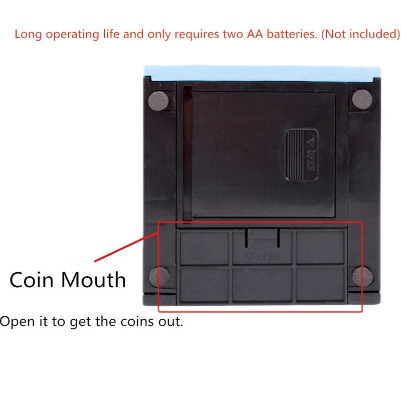 - Motion Activated: Built-in motion sensor under the mouth that it will be activated when you put your hand close to it. Then with music, the bank will eat the coins.
