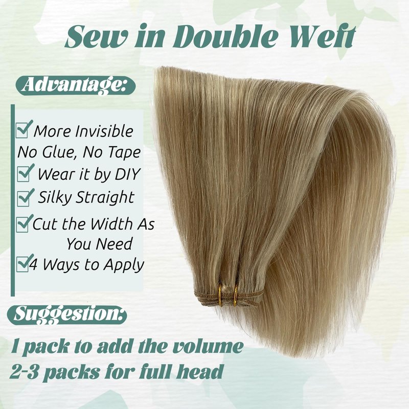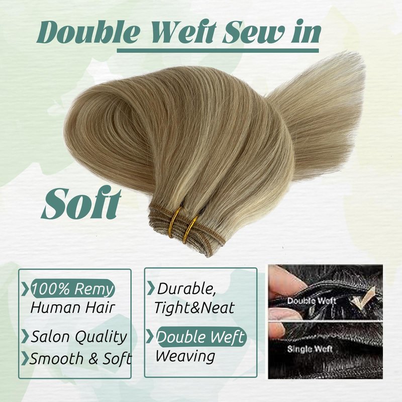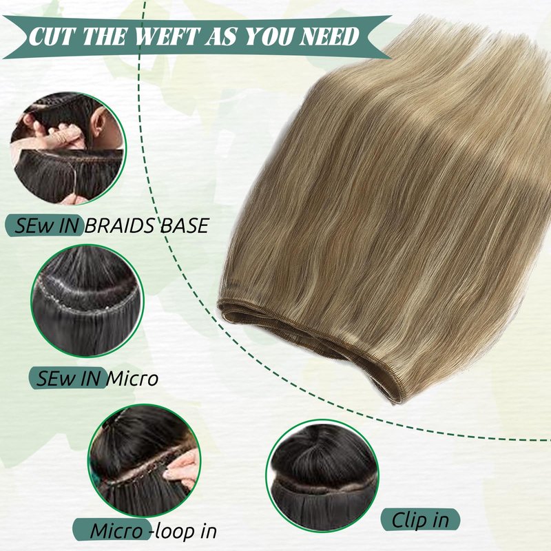 - 【Sew In Weft Made of Real Human Hair】Sew in human hair extensions are made of 100% Premium human hair, silky salon professional human hair, soft like your own natural hair.h proper aftercare and maintenance.Sew in hair blend seamlessly with your natural hair, creating a natural look.It Can Last 3-4 Monthes with Good Care.