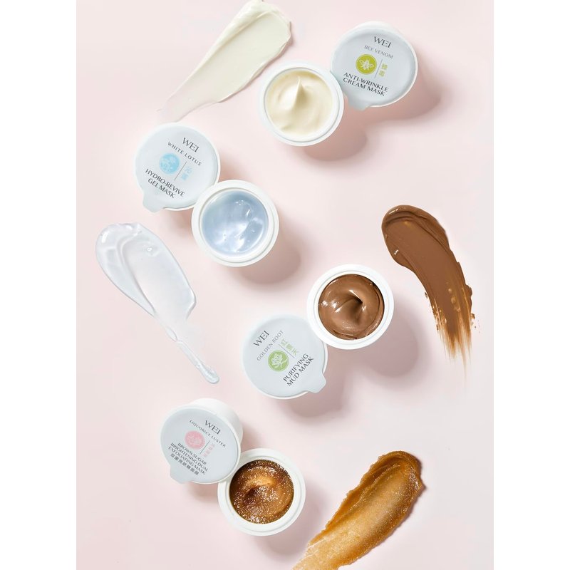 WEI Beauty Two-in-One Purifying and Glow Mask Collection | 4 golden root mask pods, 4 brown sugar pods