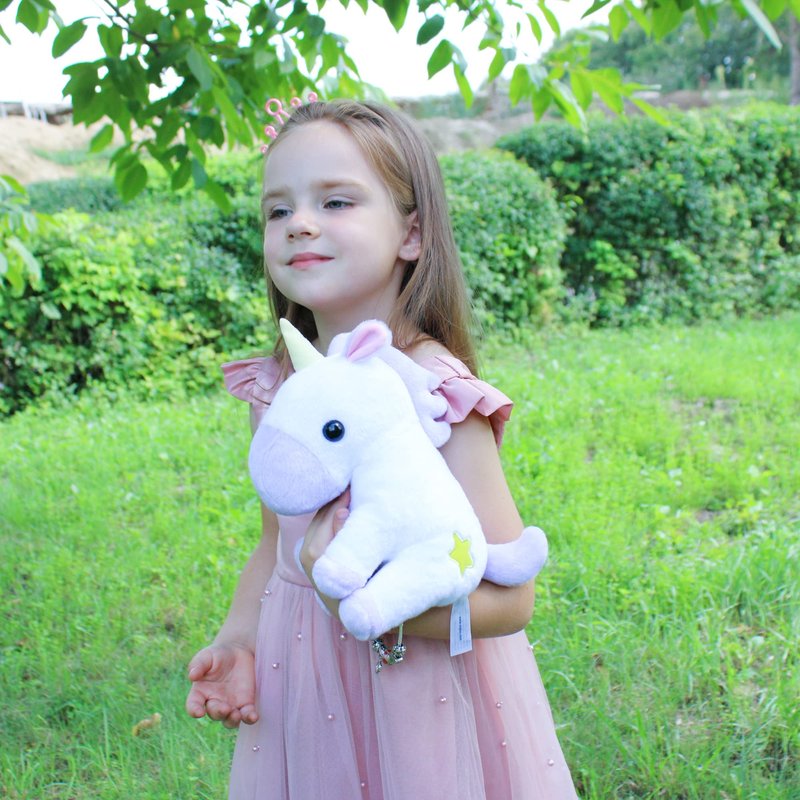 - Good Size For Hugging And Displaying: This unicorn has been designed to be small and portable, makes it easy for babies and young child to carry around with them wherever they go, providing comfort and reassurance when they are away from home, The small size also makes it easy to store the toy in a bag or backpack when traveling, so it can be taken on trips and outings, also can be a displaying, such as a decoration for a child's bedroom, a prop for imaginative play, or a companion for nap time