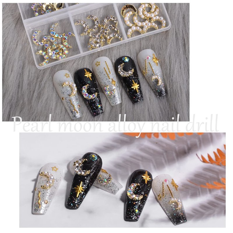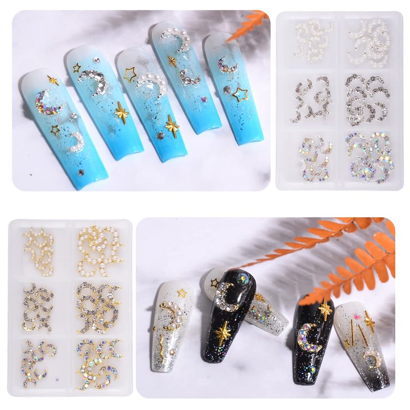 - 💗【3D Gold Moon Nail Charms】The package contains 60 pcs moon charms with pearl rhinestones, 10 pcs in each shape. Variety of rhinestones, sufficient quantity, glittering and sparkling, which can easily match your style, makes your nail design more vivid.