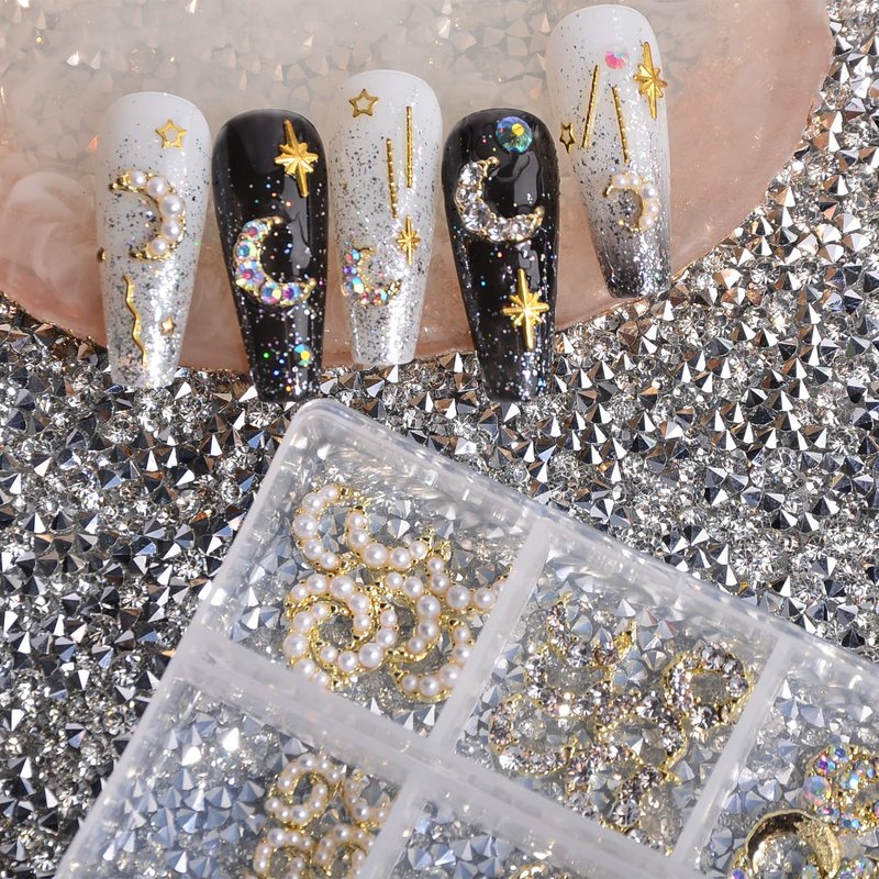 - ⭐【Simple to Use】Apply a few drops of nail glue on the finished manicure and paste it onto your nails with tweezers. To make nail art more shiny and lasting, you can apply more glue around the sides or apply a top coat on the surface. WEILUSI moon alloy crystal gems are ideal to create an attractive and exquisite nail design. It doesn't get more stylish as well as shinny than this novelty set.