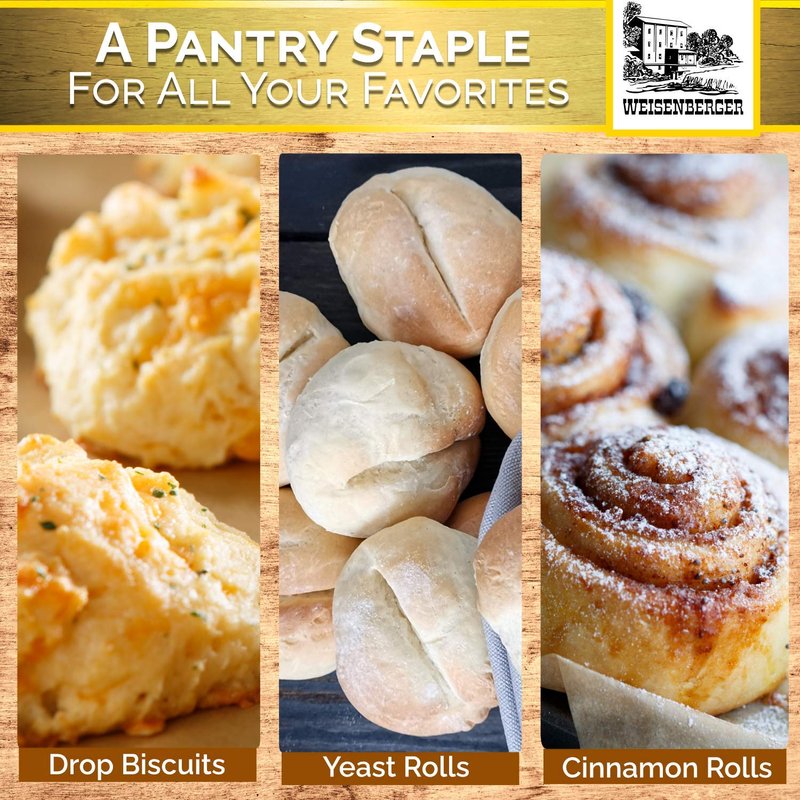 - MAKE MORE THAN BISCUITS: Weisenberger Homemade Biscuit mix is versatile enough for more than breakfast. Create delicious yeast rolls, cinnamon rolls, and more for an extra special brunch or dinner!