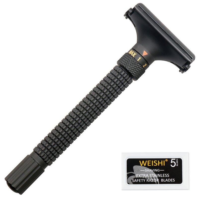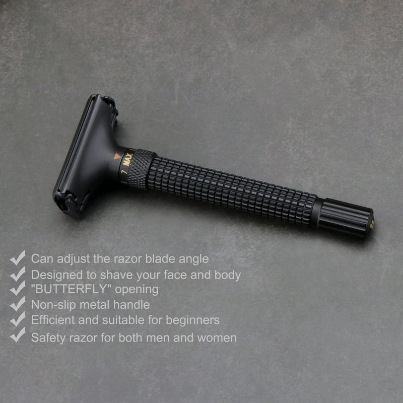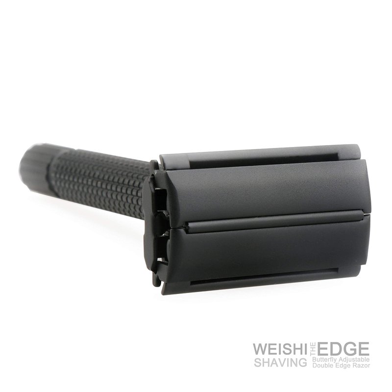 WEISHI Butterfly Open Double Edge Safety Razor Nostalgic Adjustable Matte Black