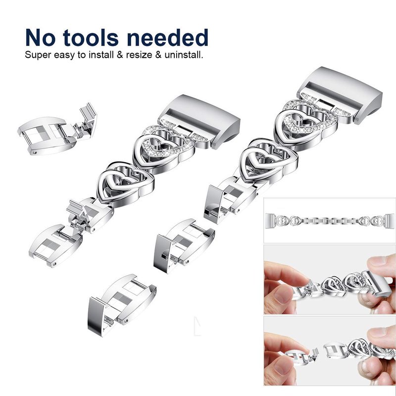 - 💖Elegant Design: Unique X &❤shaped Metal Link Bracelet - Superior craftsmanship with rhinestones combines in stylish design to match your daily style. This new-look Charge 3 Wristband fits for most occassions, date, meeting, party, sports and travel, etc.