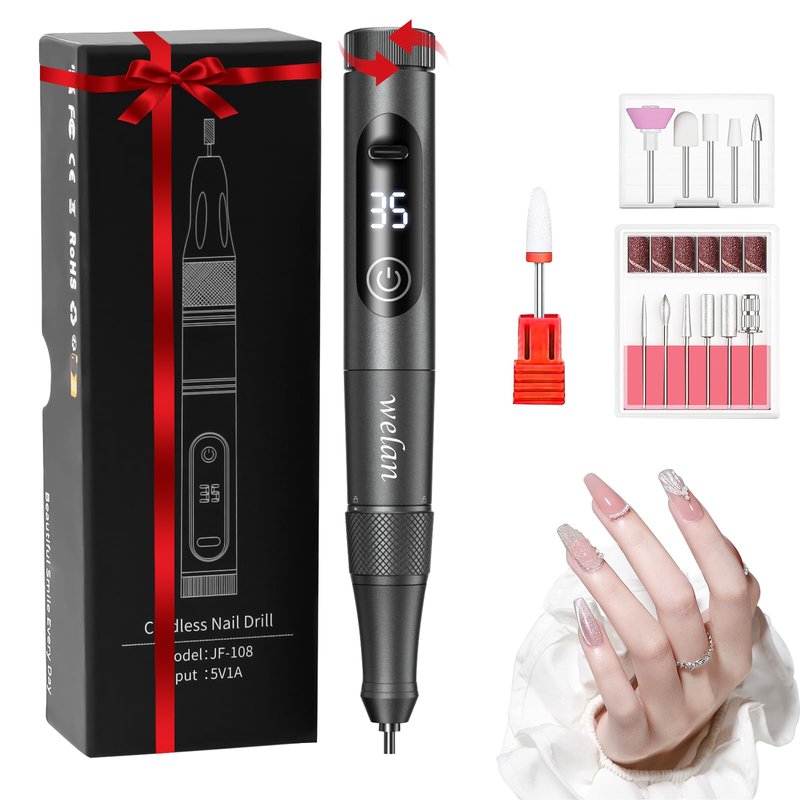 Welan Electric Nail Drill, Professional Rechargeable Cordless Nail Drill for Acrylic and Gel Nails, 35000 RPM Portable Electric Nail Drill Machine Gift Set for Manicure and Polishing
