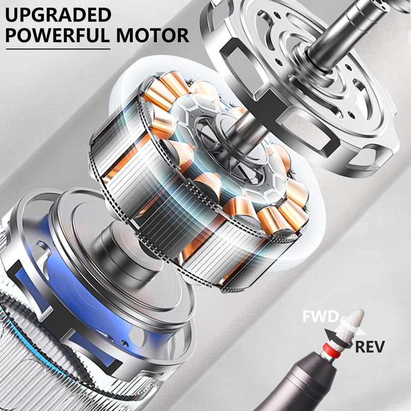 - ★【35 Speed Settings】 Cordless Rechargeable Nail Drill is equipped with a coreless motor with a high rotation speed of up to 35000 RPM that allows you to customize the speed of your nail drill. Whether you need to buff, shape or polish your nails, our adjustable high-speed function can handle it all.