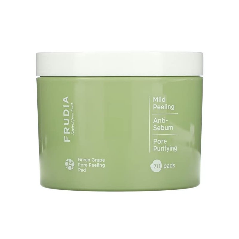 WELCOS FRUDIA Green Grape Pore Peeling Pad - Pore Minimizer Face Exfoliator Korean Toner Pads | Facial Peel Exfoliating Pads for Face | Facial Toner Cotton Pads for Face (Jar of 70 Facial Pads)