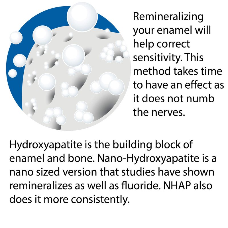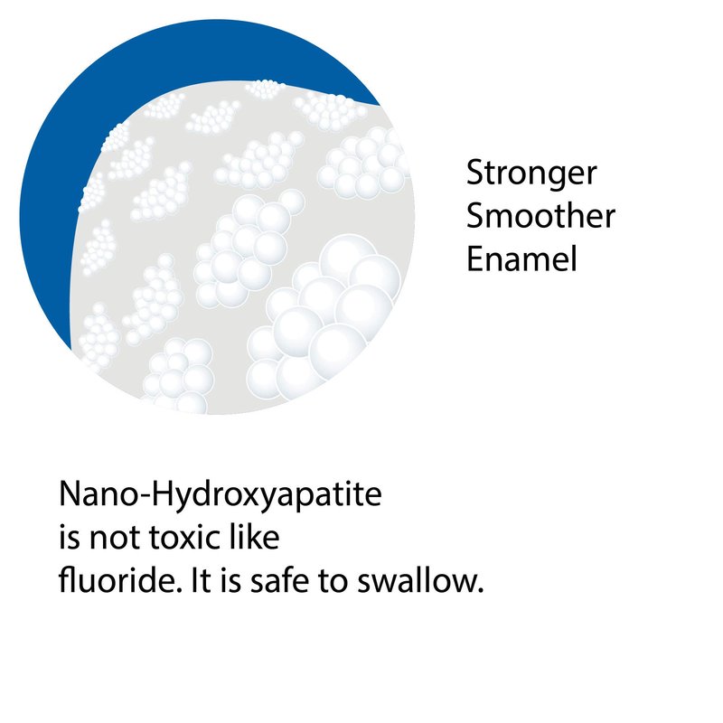 Nano-hydroxyapatite is a variation of Calcium Phosphate. Hydroxyapatite is the building block of enamel and bone. Calcium phosphate is found in most toothpaste. The nano-sized hydroxyapatite particles remineralize more effectively.