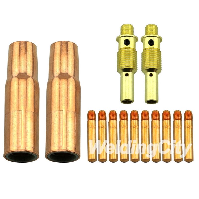 - Premium MIG welding gun accessory kit includes consumable parts of contact tips, gas nozzles, nozzle adapters and gas diffusers for use with Lincoln, ESAB and Tweco welding equipment.
