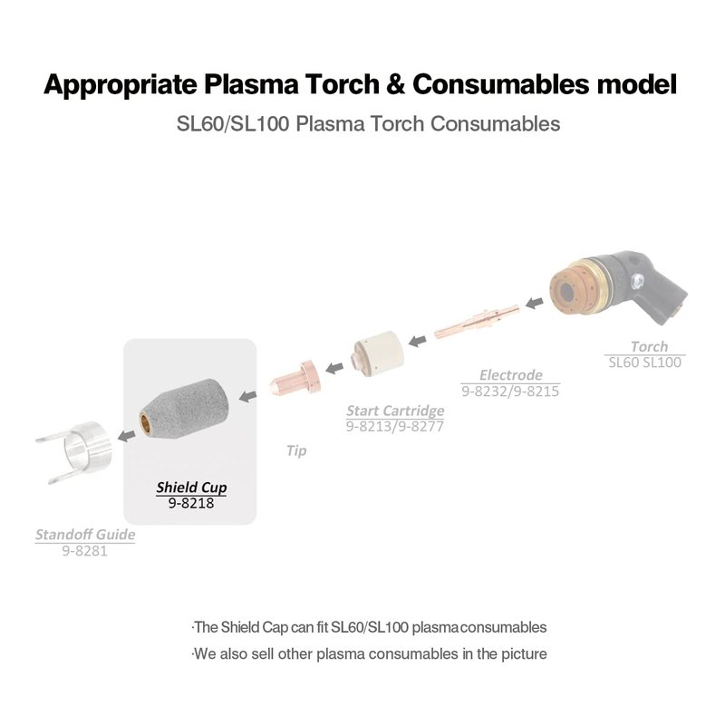 - The Shield Cap can fit CutMaster 38 / 52 / 82 plasma cutter which work with SL60 plasma torch; can fit CutMaster 58 / 60i plasma cutter which work with SL60QD plasma torch