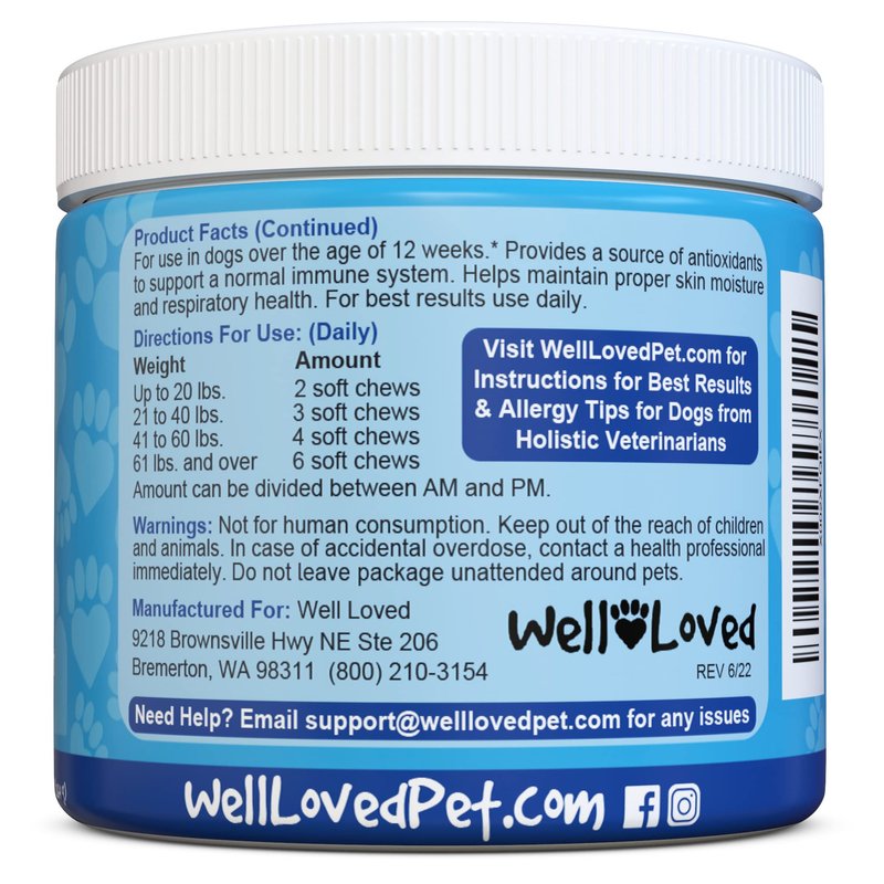 Well Loved Dog Allergy Chews - Dog Allergy Relief, Made in USA, Vet Developed, Hot Spot Treatment for Dogs, Dog Itch Relief, Anti Itch for Dogs, Dog Vitamins, Dog Skin Allergies Treatment, 120 Count