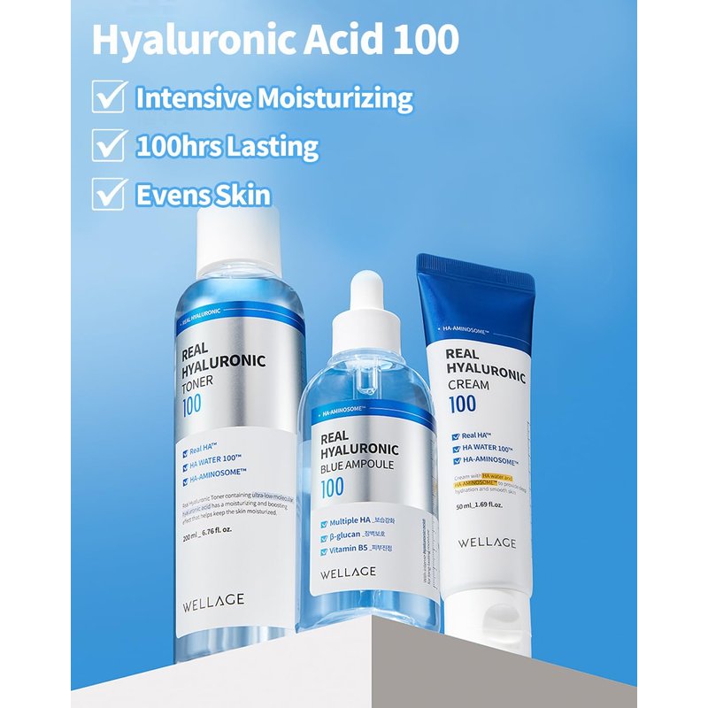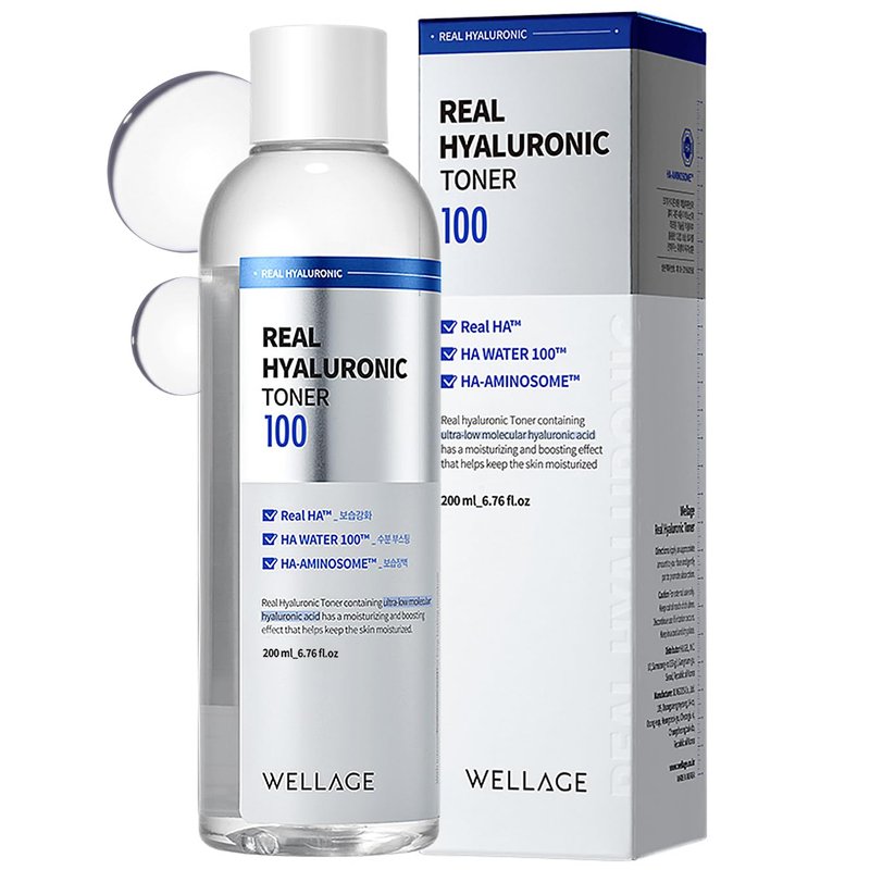 WELLAGE Real Hyaluronic Toner 100 - Korean Toner with 93% Hyaluronic Acid Water - Hydrating Toner - Deep, Quick Absorption - Hypoallergenic, Skin Irritation-Free, 6.76 fl.oz.