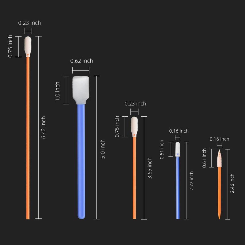- 👉 MEASUREMENTS - Total swab length: 5.1" (128mm), Head length: 0.9" (24mm), Head width: 0.5" (15mm), Head thickness: 0.34" (8.8mm), Handle length: 4.1" (104mm)