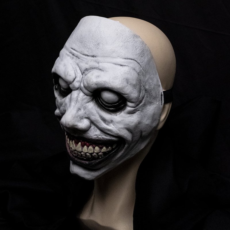 Wellinology Smiling Demon Halloween Scary Mask, Latex Creepy Realistic Ghost Devil Zombie Cosplay Costume Mask Party Props (White Smiling Demon)