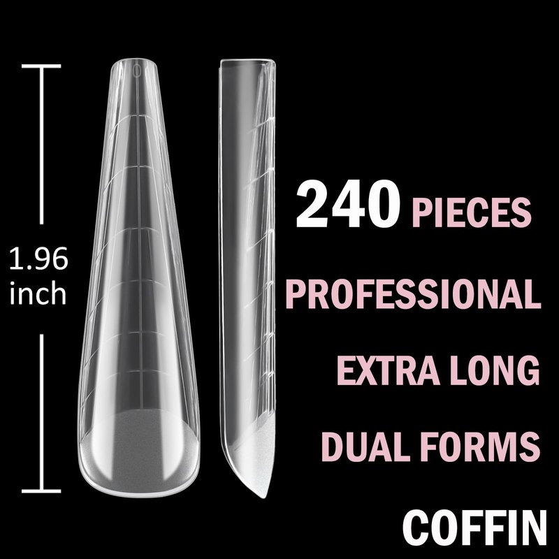 Wellquinn 3XL Dual Nail Forms,Coffin Curved Nail Molds for Nail Extension Polygel Builder Gel Acrylic Nail Dip Powder Nails Poly Nail Extension Gel