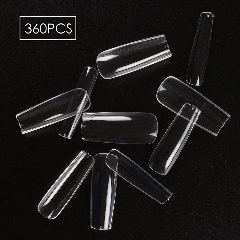 Wellquinn Square Nail Tips Full Cover, Long Clear Professional Acrylic Tips, Long Lasting Utra-hard False Nails Press on Nails for Nail Extension Manicurists, 360Pcs