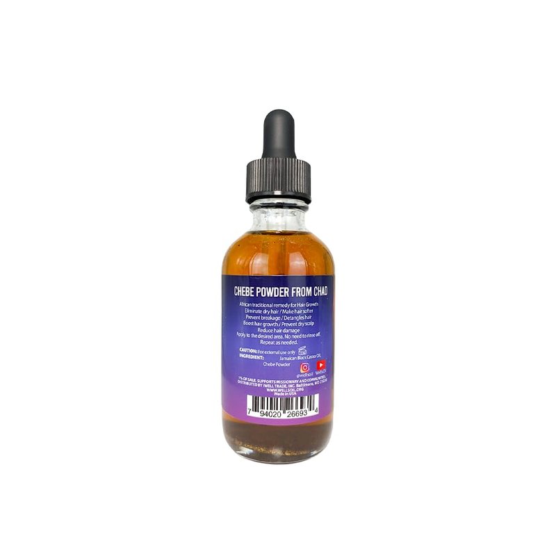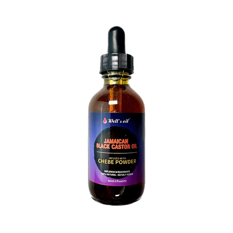 Well's Jamaican Black Castor Oil Infused with Chebe Powder 2 fl oz | 100% Natural | Improves Hair Density | Nourishes